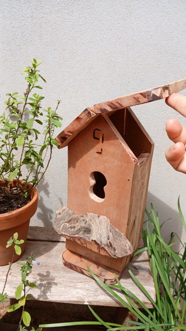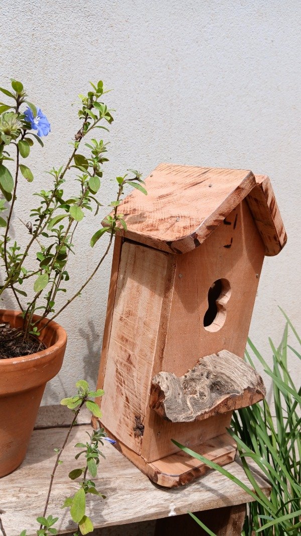 Casita nido tamaño mediana realizada en madera masisa y detalles recuperada , con detalle de techo que se abre para limpieza de viejos nidos